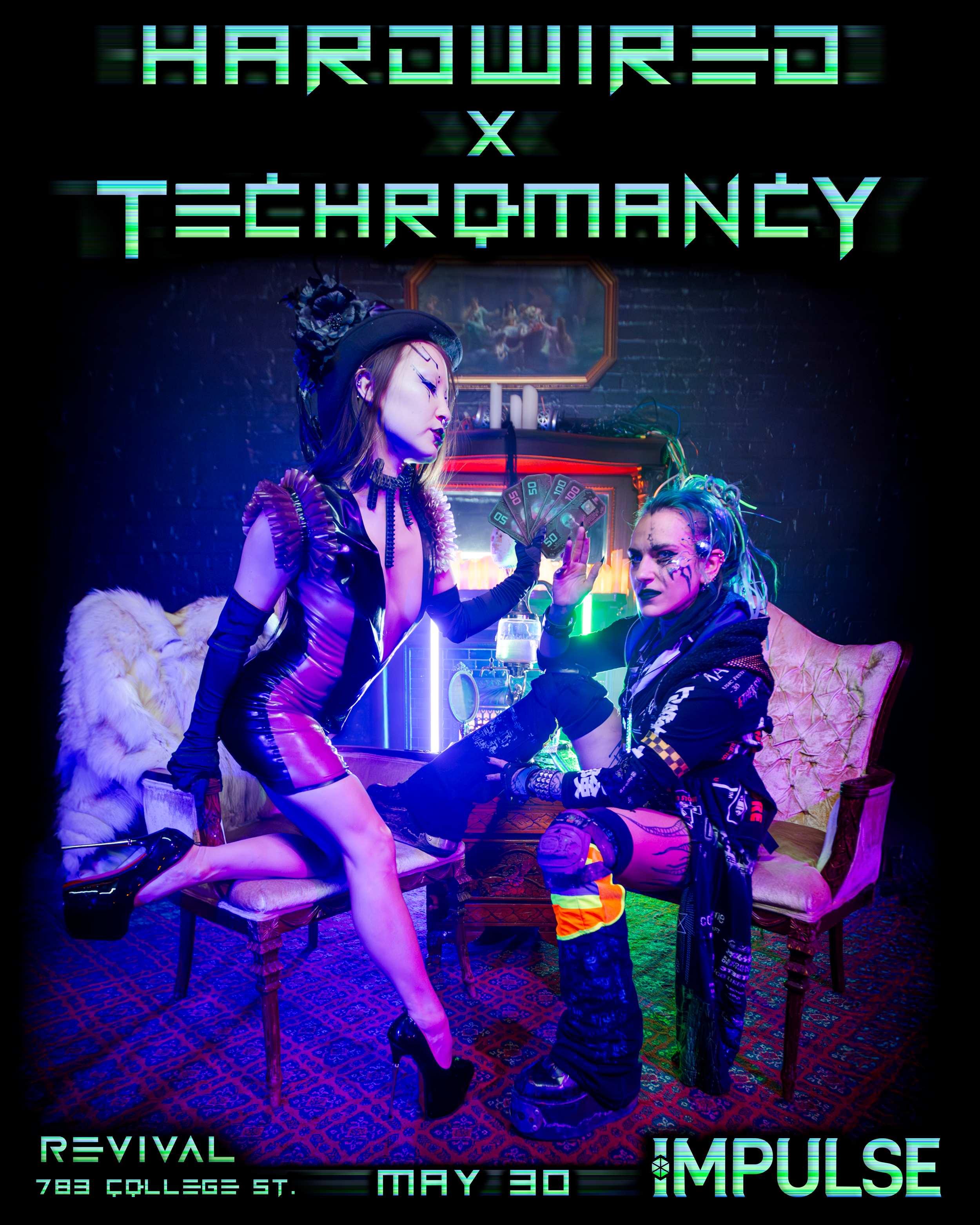 A brand new hybrid event, combining cyberpunk decor, performance art, dungeon space and roleplaying to the soundtrack of techno, industrial, and heavy bass music. A multi-floor, multi-stage immersive event, from the nebulous underground to the lavish and decadent gala, or the exclusive Impulse Lounge.